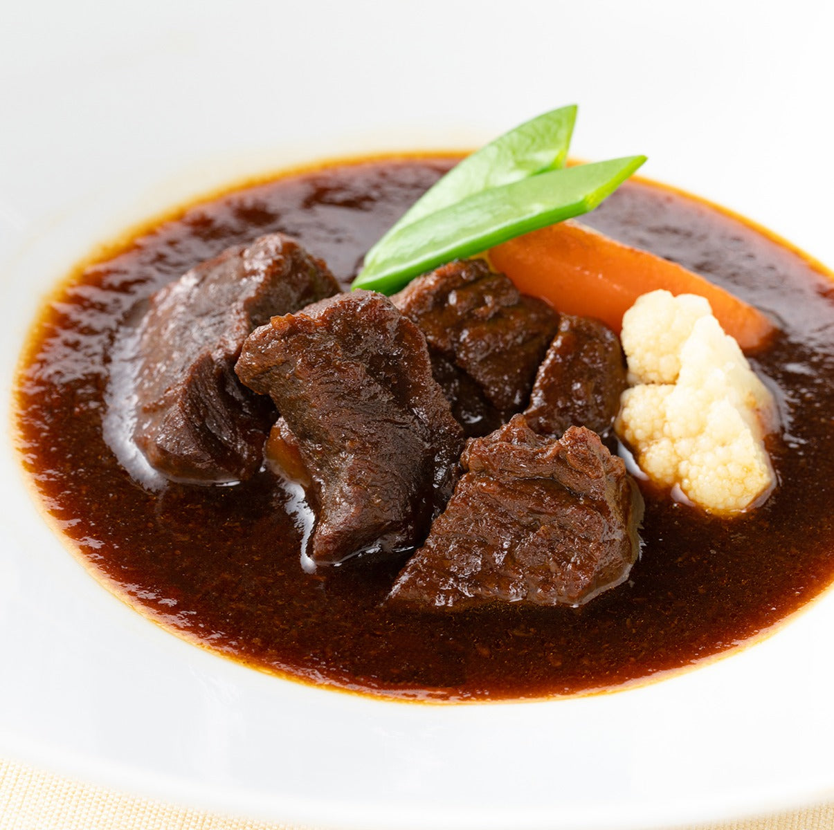じっくり煮込んだ近江牛の旨みが溶け込んだビーフシチューは、濃厚で深みのある味わいが魅力です。ほろほろとやわらかく煮崩れる牛肉と、ソースに絡む野菜の甘みが一体となり、特別な日の食卓を華やかに演出します。ご家庭でもレストランのような贅沢感をお楽しみください。